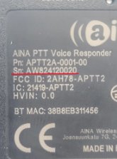| AINA PTT Voice Responder2 | APTT2 | ![]() | ![]() 背面クリップ裏の「Sn:」から始まる文字列 |